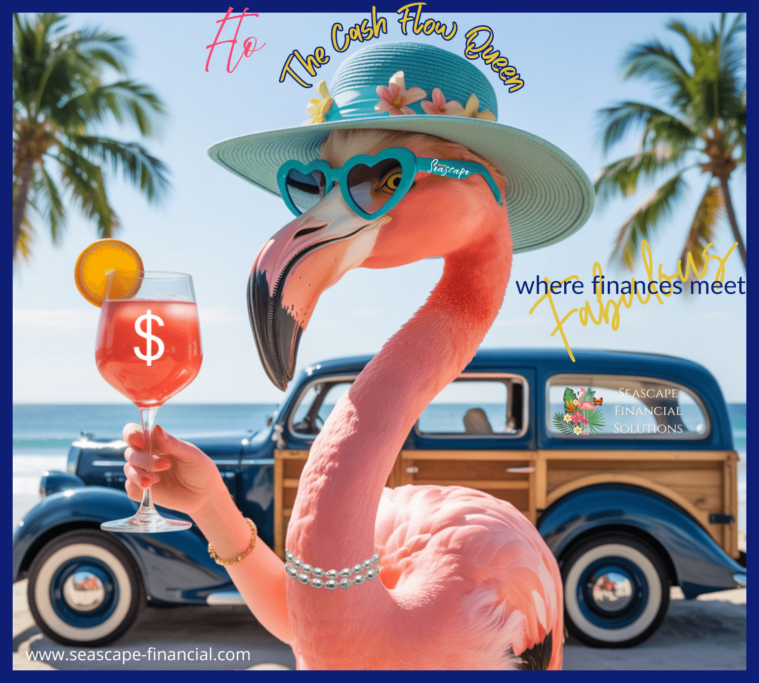 delivers money wisdom with humor, rebellion, and tropical glam.